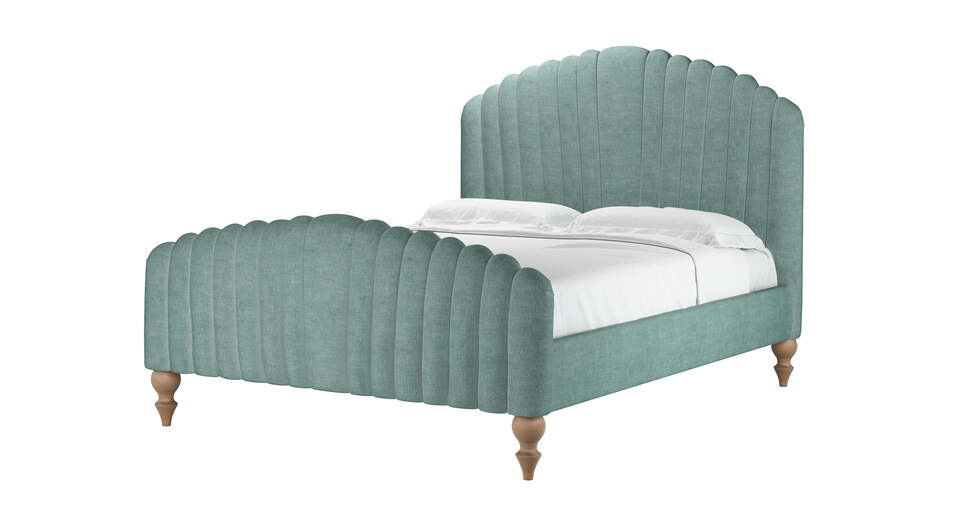 Bella King Bed in Sea Spray Aquaclean Clever Chenille