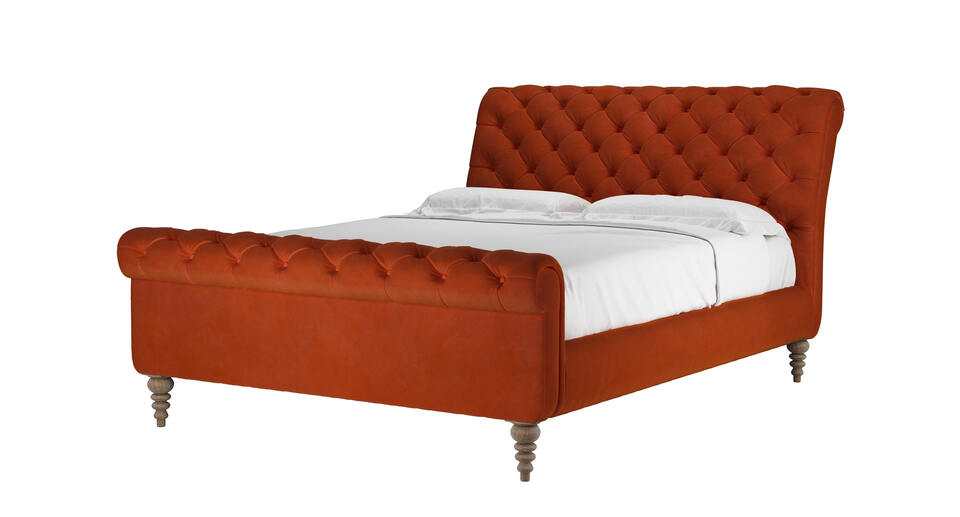 Knightsbridge King Bed in Brick Aquaclean Clever Velvet