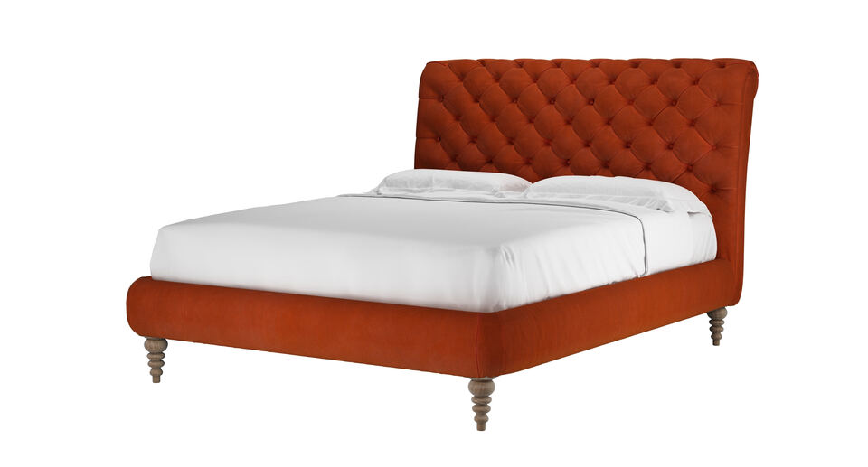 A chesterfield inspired masterpiece. back cushions: see website color: orange,red covers: see website seat cushions: see website size: King Size Bed
