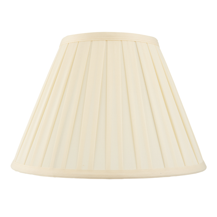 A simple classic this 16 inch tapered drum shaped shade features cream box pleat fabric. Supplied with a shade reducer. Available in a choice of sizes. Note - this shade has a fixed gimbal and is not suitable for use with pendants. Material: Fabric Product Zone: Indoor Bulb Included: No Bulb Type: 60W E27 or B22 GLS Product Lumens: 700 Lumens Per Watt: 12 IP Rating: 20