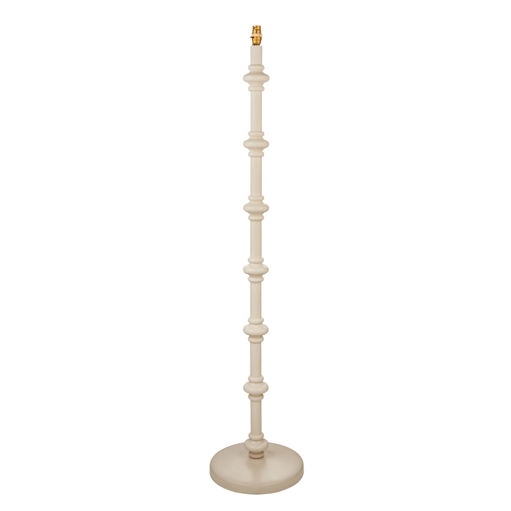 This unique wooden turned spindle floor lamp is inspired by past design styles with a fresh update. Painted in classic satin almond white white with a brass B22 switched lamp holder and grey braided fabric flex. Each product is turned on a wood lathe by hand and will be unique, any variants in finish are part of the individual charm of the product. Pair with one of our 35cm or 40cm decorative fabric shades for a unique classic style. Material: Brass / Steel / Wood Product Zone: Indoor Bulb Included: No Bulb Type: B22 GLS Cable Length: 2000mm Switch Type: Lampholder Switch (Metal) Dimmable: Non-dimmable Voltage: 220-240V Class: Class 1 IP Rating: 20
