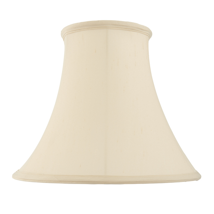 This 22 inch handmade cream lamp shade is shaped in a round bell design and has a double folded trim on the top and bottom. For use with a variety of lamp bases and available in a choice of sizes. Note - this shade requires a separate carrier to use. Material: Fabric Product Zone: Indoor Bulb Included: No Bulb Type: 60W E27 or B22 GLS Product Lumens: 700 Lumens Per Watt: 12 IP Rating: 20