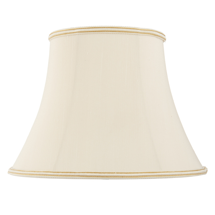 A classic 16 inch handmade lamp shade is a balloon lined bowed oval in a cream fabric with a subtle woven trim on the top and bottom edges. Available in a choice of sizes. Note - this shade has a fixed gimbal and is not suitable for use with pendants. Material: Fabric Product Zone: Indoor Bulb Included: No Bulb Type: 60W E27 or B22 GLS Product Lumens: 700 Lumens Per Watt: 12 IP Rating: 20 Additional Information: Dia Top Shade: 165-245mm. Dia Bottom Shade: 315-415mm