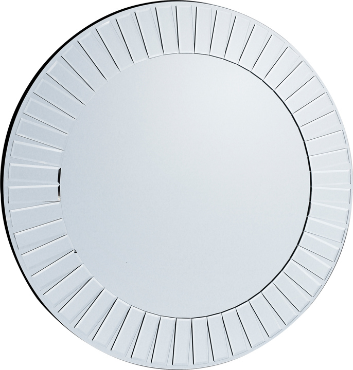 Stylish mosaic style mirror framed with intricate bevelled glass pieces. Material: Glass / MDF Type - Mirror: Wall Style - Mirror: Glass on Glass Shape - Mirror: Round Hanging Orientation: Portrait Glass Type: Bevelled Frame Width: 125mm Fixing Type: D-Ring