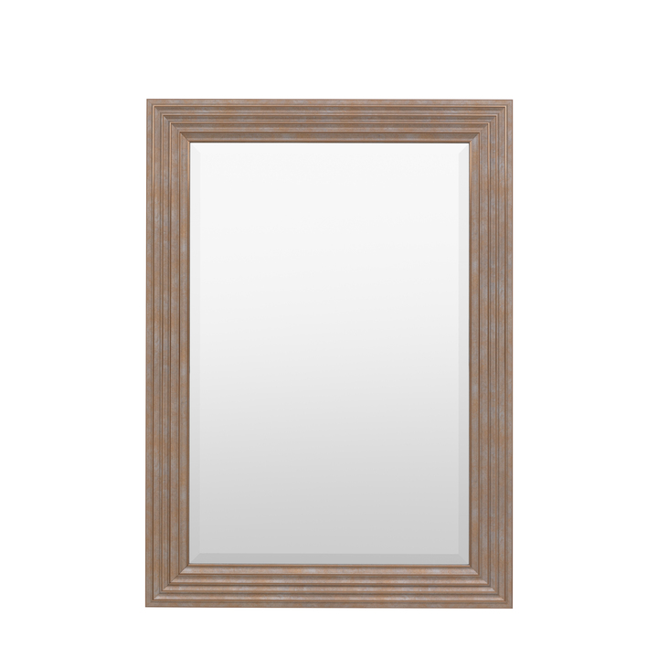 This mirror boasts a distinctive ridged design that catches the eye, while the distressed finish adds an authentic, timeworn charm. The rectangular frame, with its rich gold tones and textured details, provides a sophisticated yet rustic appeal, making it a striking focal point for any room. Ideal for living rooms, bedrooms, or hallways, this mirror blends timeless beauty with modern style, effortlessly enhancing your decor with a warm, inviting glow.