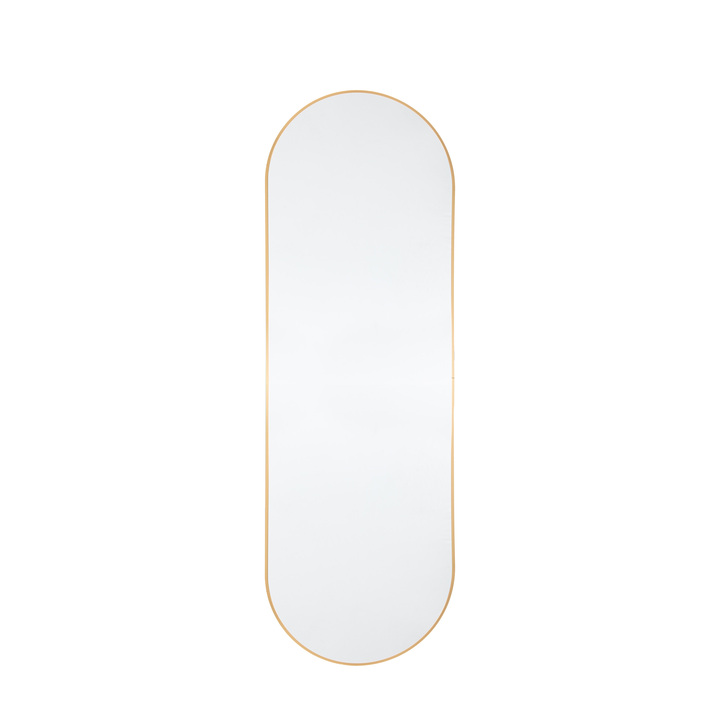 With friendly rounded shapes this mirror set in a simple gold frame adds some clean modern lines to your wall. Available is 3 sizes Material: Glass / MDF / Aluminium Product Zone: Indoor Type - Mirror: Wall Style - Mirror: Modern Shape - Mirror: Oval Hanging Orientation: One Way Only Glass Type: Plain Glass Size mm: W495 x H1495 Frame Width: 7.5mm Frame Colour: Gold Fixing Type: Keyhole