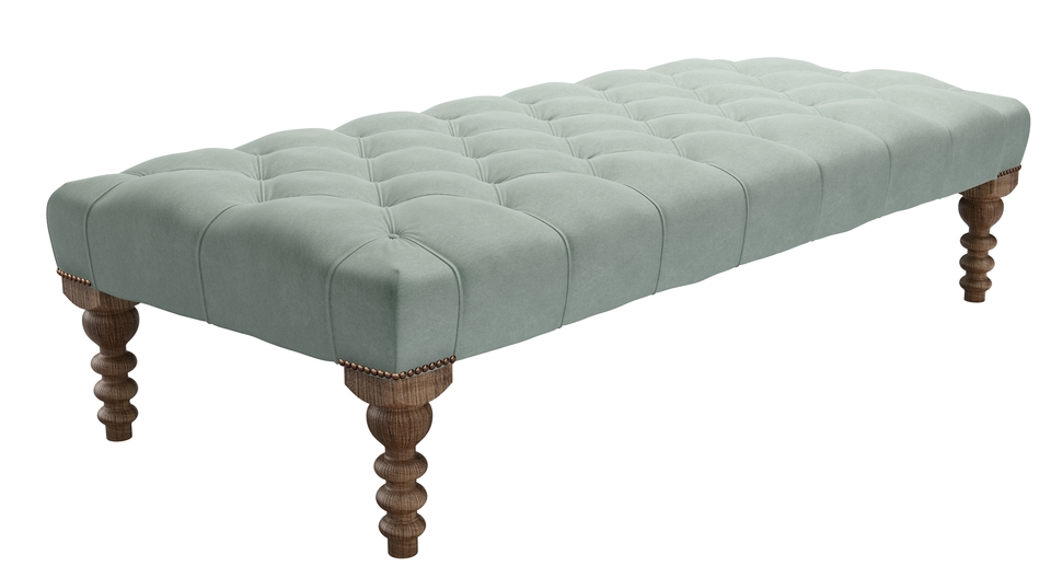 A real classic with luxurious, deep pleated buttons that will add glamour and sophistication to any room. Great for looking at, putting magazines on and for putting your feet up too. Buttons and twiddly legs! This is one fancy footstool (https://www.sofa.com/gb/accessories/footstools). back cushions: see website color: green covers: see website seat cushions: see website size: Large Rectangular Footstool