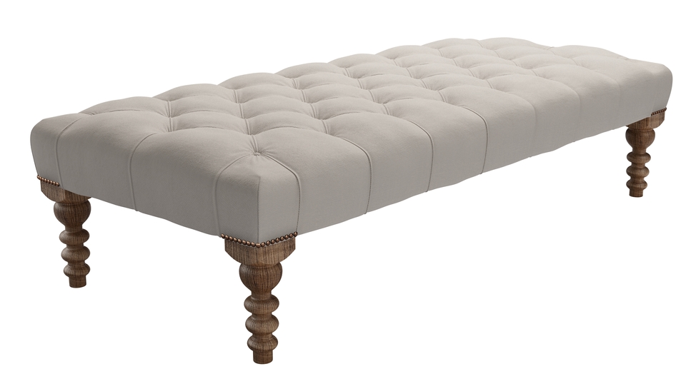 Valentin Large Rectangular Footstool in Stone Brushed Linen Cotton