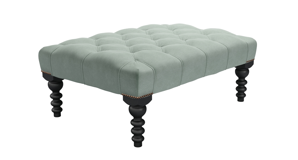 A real classic with luxurious, deep pleated buttons that will add glamour and sophistication to any room. Great for looking at, putting magazines on and for putting your feet up too. Buttons and twiddly legs! This is one fancy footstool (https://www.sofa.com/gb/accessories/footstools). back cushions: see website color: green covers: see website seat cushions: see website size: Medium Rectangular Footstool