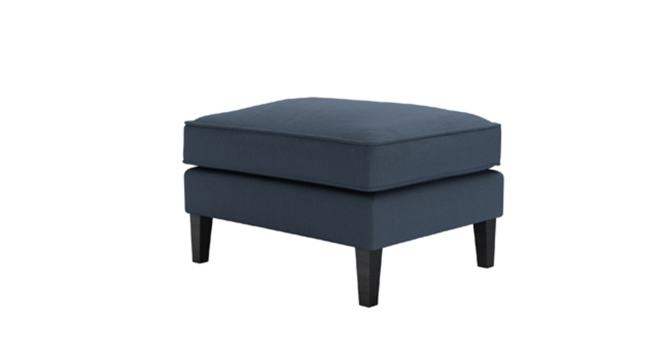 Slender, sleek and beautifully proportioned. back cushions: see website color: blue covers: see website seat cushions: see website size: Medium Rectangular Footstool
