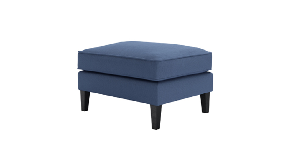 Slender, sleek and beautifully proportioned. back cushions: see website color: blue covers: see website seat cushions: see website size: Medium Rectangular Footstool