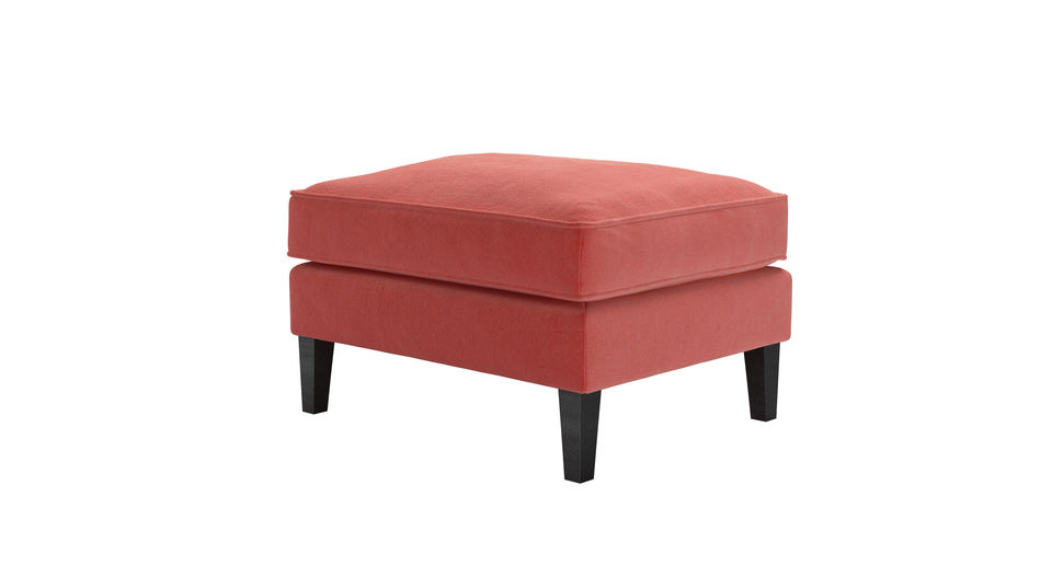 Slender, sleek and beautifully proportioned. back cushions: see website color: pink covers: see website seat cushions: see website size: Medium Rectangular Footstool