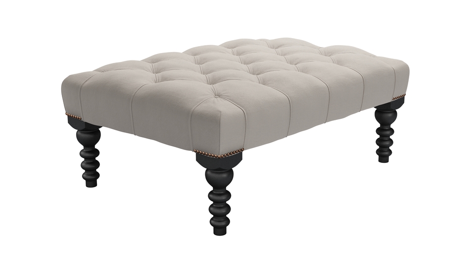 A real classic with luxurious, deep pleated buttons that will add glamour and sophistication to any room. Great for looking at, putting magazines on and for putting your feet up too. Buttons and twiddly legs! This is one fancy footstool (https://www.sofa.com/gb/accessories/footstools). back cushions: see website color: grey,natural covers: see website seat cushions: see website size: Medium Rectangular Footstool