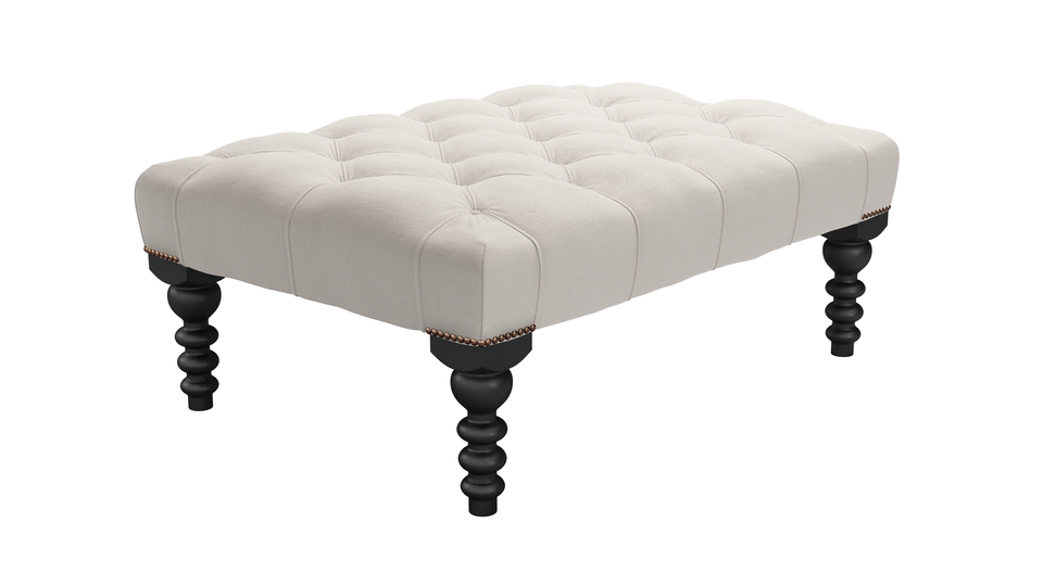 A real classic with luxurious, deep pleated buttons that will add glamour and sophistication to any room. Great for looking at, putting magazines on and for putting your feet up too. Buttons and twiddly legs! This is one fancy footstool (https://www.sofa.com/gb/accessories/footstools). back cushions: see website color: natural covers: see website seat cushions: see website size: Medium Rectangular Footstool