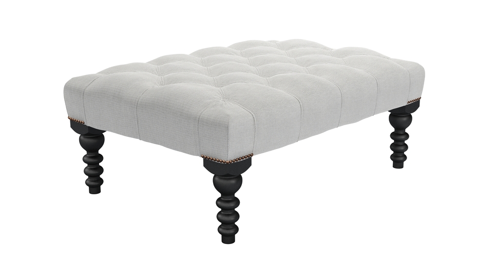 A real classic with luxurious, deep pleated buttons that will add glamour and sophistication to any room. Great for looking at, putting magazines on and for putting your feet up too. Buttons and twiddly legs! This is one fancy footstool (https://www.sofa.com/gb/accessories/footstools). back cushions: see website color: natural,white,grey covers: see website seat cushions: see website size: Medium Rectangular Footstool