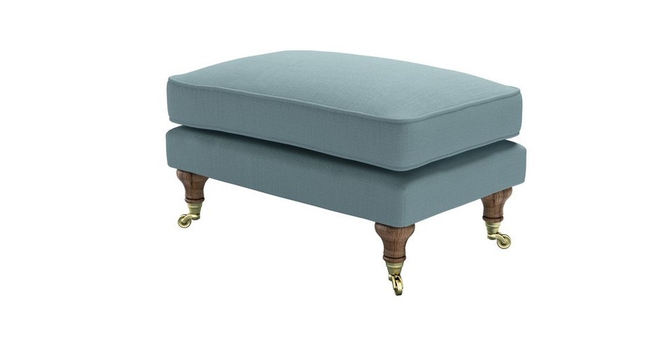 Bluebell Medium Rectangular Footstool in Lagoon Brushed Linen Cotton