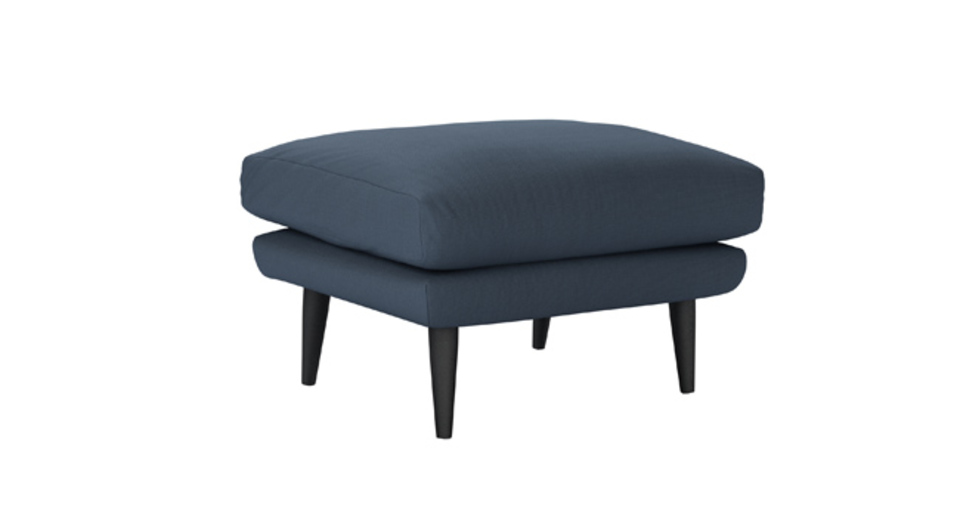 Mid-century elegance. back cushions: see website color: blue covers: see website seat cushions: see website size: Medium Rectangular Footstool