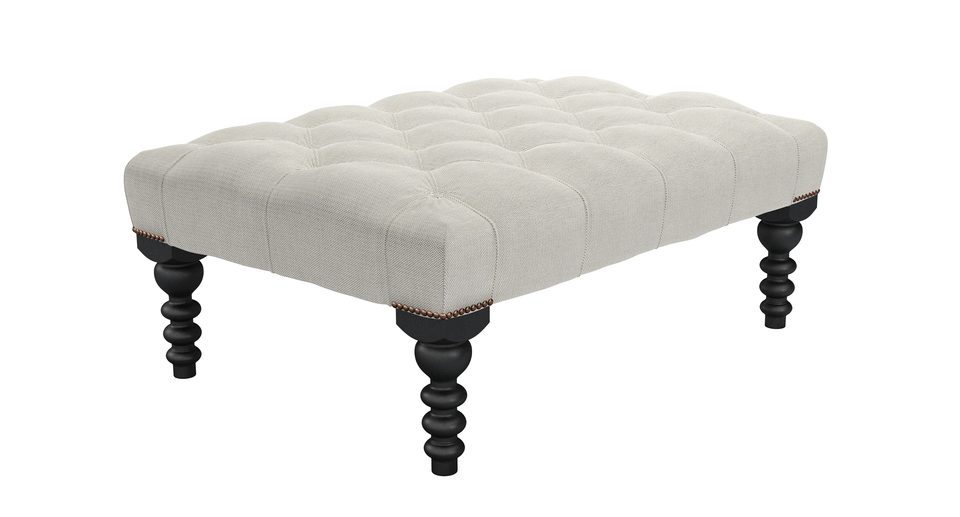 A real classic with luxurious, deep pleated buttons that will add glamour and sophistication to any room. Great for looking at, putting magazines on and for putting your feet up too. Buttons and twiddly legs! This is one fancy footstool (https://www.sofa.com/gb/accessories/footstools). back cushions: see website color: natural covers: see website seat cushions: see website size: Medium Rectangular Footstool