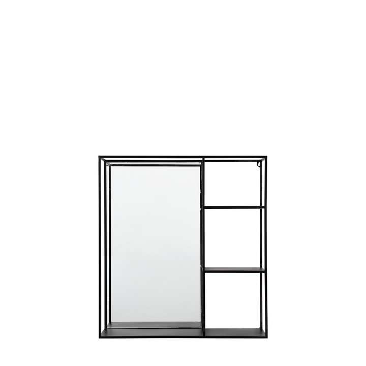 Functional rectangular mirror with a sleek and fashionable design, featuring handy shelving and bold black framing. Perfect for a bathroom set up or as a decorative lounge or bedroom space. Material: Glass / Iron / MDF Type - Mirror: With Storage Style - Mirror: Metal Shape - Mirror: Rectangle Hanging Orientation: Portrait Glass Type: Plain Glass Size mm: 400 Frame Width: 8mm Frame Colour: Black Fixing Type: Keyhole