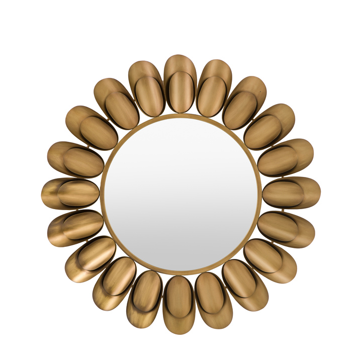 This opulent statement mirror features curved metal pieces encircling the mirror in a brushed bronze finish. The mirror's contemporary design allows it to enhance any modern interior style. Material: Iron / Glass / MDF Type - Mirror: Wall Style - Mirror: Modern Shape - Mirror: Round Hanging Orientation: Portrait Glass Type: Plain Glass Size mm: W510 x H510 Frame Width: 215mm Frame Colour: Gold Fixing Type: Keyhole