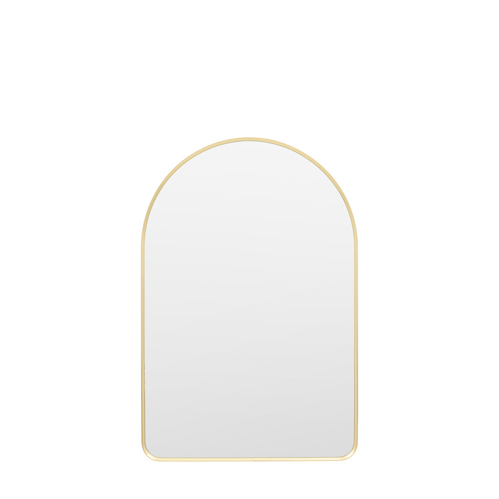 Introducing this arched wall mirror, a stunning statement piece that will transform any room in your home. This captivating mirror boasts a classic arched design, framed in a sleek gold metal, adding a touch of sophistication and warmth to your décor. Material: Glass / MDF / Aluminium Product Zone: Indoor Type - Mirror: Full Length Style - Mirror: Modern Shape - Mirror: Arched Hanging Orientation: Portrait Glass Type: Plain Glass Size mm: 590 x 890 Fixing Type: Keyhole
