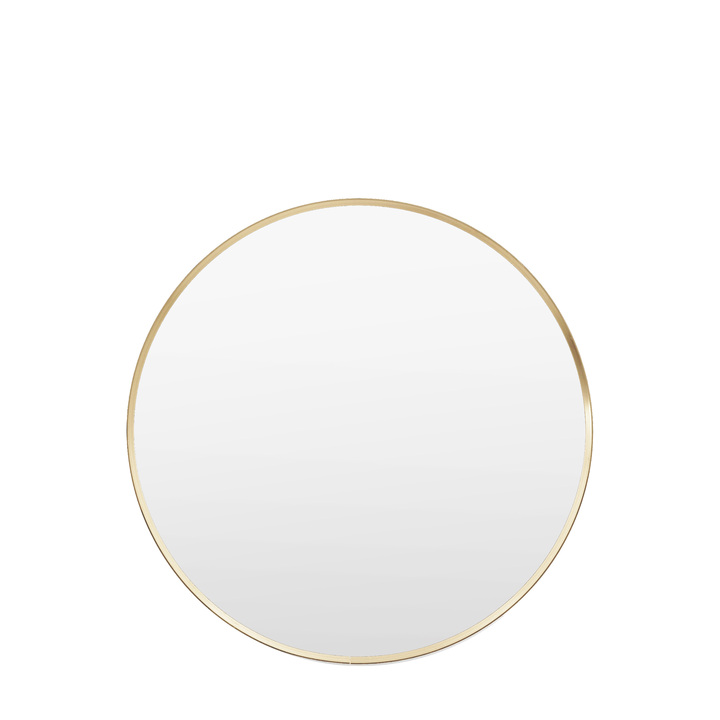 This captivating minimalistic mirror has been designed to effortlessly blend into various interior styles. With a thin metal frame, this mirror is an ideal choice for those who want a stylish practical solution. Available in four different sizes and two colours. Material: Glass / MDF / Aluminium Type - Mirror: Wall Style - Mirror: Modern Shape - Mirror: Round Hanging Orientation: Both - Portrait & Landscape Glass Type: Plain Glass Size mm: W600 x H600 Frame Width: 5mm Frame Colour: Gold Fixing Type: Keyhole