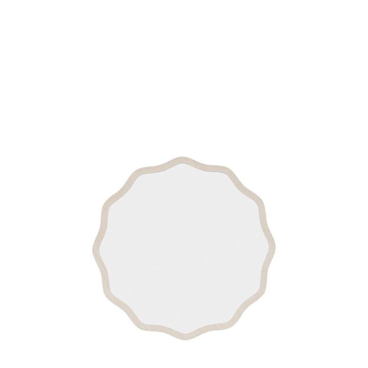 With a distinctive wavy silhouette, this mirror introduces soft movement and sculptural style to an interior. Finished in a light textured grey, the gently undulating frame adds visual interest while maintaining a calm, contemporary feel. Modern yet organic, the mirror makes a subtle statement and brings relaxed elegance to a wide range of interiors. Material: MDF / Glass / Plastic Type - Mirror: Wall Style - Mirror: Wood / Wood Effect Shape - Mirror: Round Hanging Orientation: One Way Glass Type: Plain Glass Size mm: 570 x 570mm Frame Width: 15mm Frame Colour: Grey Fixing Type: Sawtooth