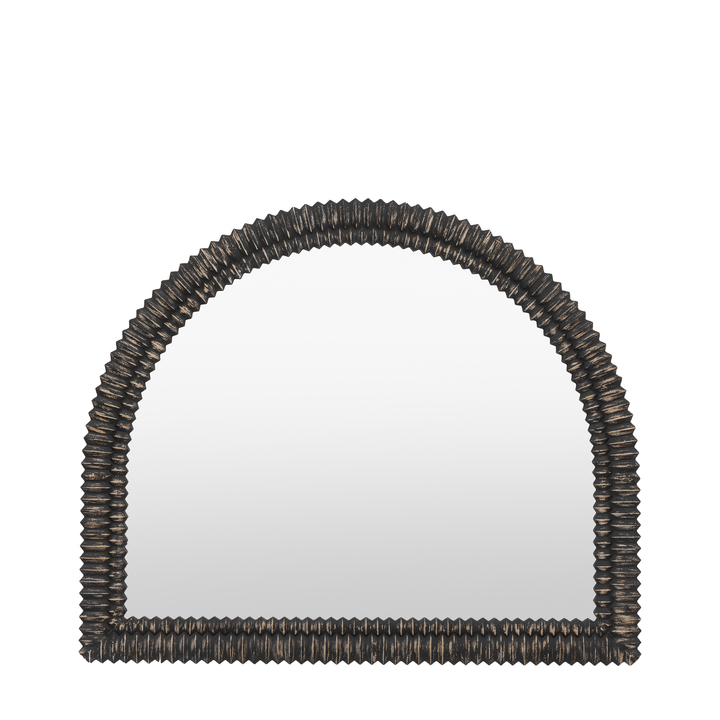 Transform your space with the distinctive elegance of our semi-circle overmantel mirror, showcasing a captivating 3D wooden etching style frame. The semi-circle shape provides a graceful, curved design, while the intricate etching adds a unique, textured dimension to the mirror. The rich wood finish enhances the detailed craftsmanship, making it a stunning focal point above your mantle or as a standout piece in any room. Material: MDF / Glass Product Zone: Indoor Type - Mirror: Wall Style - Mirror: Artisan Shape - Mirror: Arched Hanging Orientation: Portrait Glass Type: Plain Glass Size mm: 1000x800 Frame Width: 103mm Frame Colour: Antique Black Fixing Type: D-Ring Anti Topple Kit Included: Yes