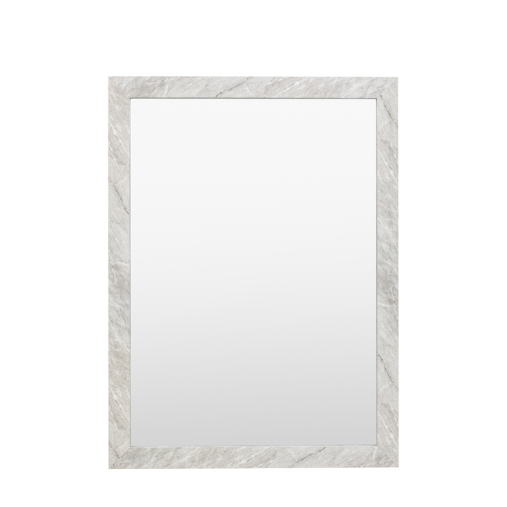 Enhance your home with the marble design wrapped rectangle mirror, a perfect blend of contemporary style and classic luxury. This rectangular mirror features a sleek grey frame adorned with a sophisticated marble design, adding an elegant touch to any room. Ideal for bedrooms, living rooms, or dressing areas, it offers both practicality and aesthetic appeal. Material: Glass / PS / MDF Product Zone: Indoor Type - Mirror: Wall Style - Mirror: Traditional Shape - Mirror: Rectangle Hanging Orientation: Both - Portrait & Landscape Glass Type: Plain Glass Size mm: 500x700 Frame Width: 43mm Frame Colour: Marble White Fixing Type: D-Ring Anti Topple Kit Included: No