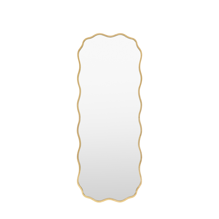 Add a dose of flair into your decor with our quirky round wavy edge leaner metal mirror in a rustic gold finish. Crafted from durable metal, this mirror combines a bold, unique design with high-quality craftsmanship. This versatile mirror offers the flexibility to be styled as a leaner or wall-hung, allowing you to create the perfect look for any space. Material: Glass / MDF / Iron Product Zone: Indoor Type - Mirror: Wall Style - Mirror: Metal Shape - Mirror: Rectangle Hanging Orientation: Both - Portrait & Landscape Glass Type: Plain Glass Size mm: 515x1570 Frame Width: 15mm Frame Colour: Gold Fixing Type: Keyhole Anti Topple Kit Included: Yes