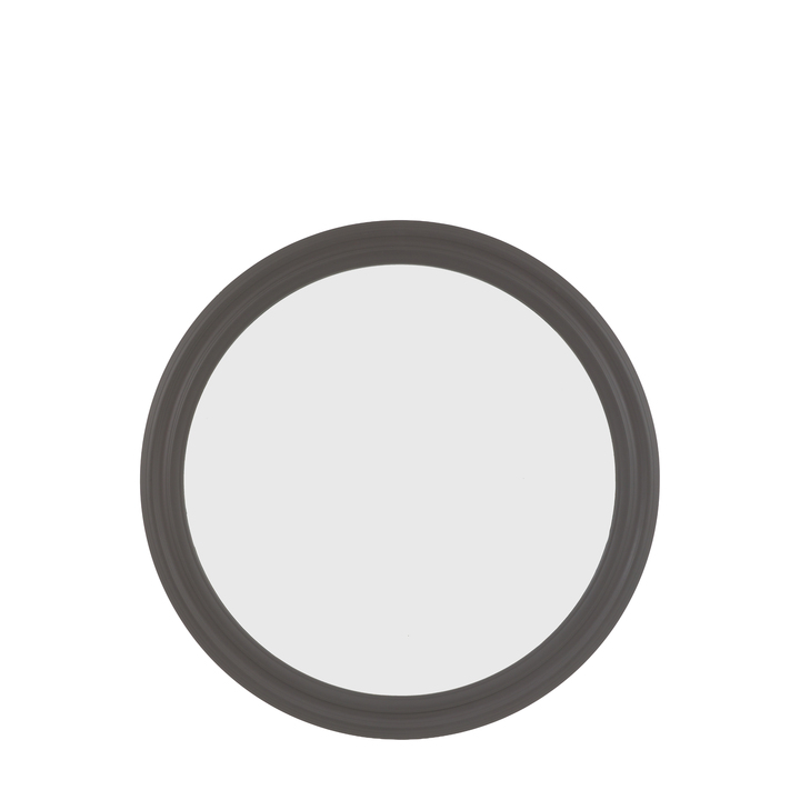 The soft, curving profiles of this mirror brings relaxed elegance to contemporary country interiors. Finished in a charcoal colour tone, the gently moulded frame adds warmth and character while maintaining a clean, modern look. Natural and understated, these mirrors reflect a modern country aesthetic with timeless appeal. Material: MDF / Glass / Plastic Type - Mirror: Wall Style - Mirror: Traditional Shape - Mirror: Round Hanging Orientation: One Way Glass Type: Plain Glass Size mm: 760 x 760mm Frame Width: 76mm Frame Colour: Navy Fixing Type: D-Ring