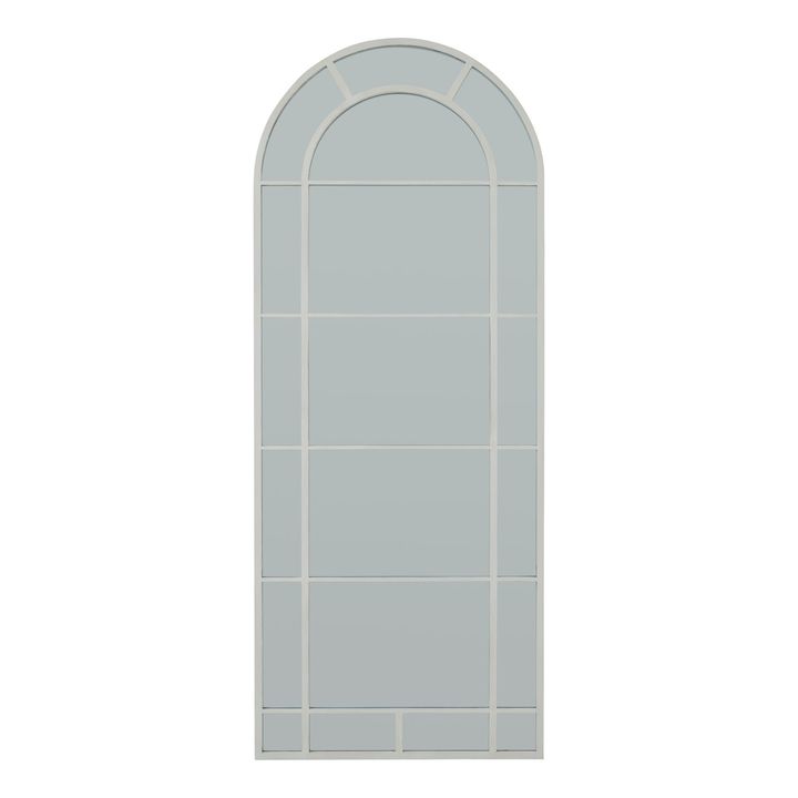 A graceful architectural statement piece that celebrates the fusion of classic and contemporary design, this arched window mirror channels the romance of period manor houses while adapting perfectly to modern spaces. The pristine white frame provides a crisp outline that emphasizes the dramatic sweep of the arch, creating depth and perspective in any room. The thoughtful proportions and delicate detailing evoke the grandeur of Gothic cathedral windows, while the clean lines ensure seamless integration with current interior trends. For an artfully curated display, consider pairing with the Pella or Incia Stem table lamps, whose sculptural forms echo the mirror's architectural character. The Leptis Magna lamp offers another compelling accent piece, its structured silhouette providing a beautiful counterpoint to the mirror's fluid curves. This mirror functions as both a practical reflective surface and an enduring artistic focal point that will enhance retail displays and resonate with design-conscious customers seeking statement pieces for their homes.