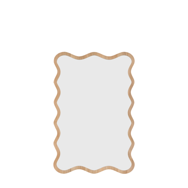 Perfect for adding a playful, contemporary edge to a modern interior, this mirror's wavy silhouette feels fresh, expressive and full of movement. Finished in a light oak, the natural tones and grains soften the bold shape, balancing warmth and modern design. Distinctive and exciting, this statement mirror adds charm, energy and character to a space. Material: MDF / Glass / Plastic Type - Mirror: Wall Style - Mirror: Wood / Wood Effect Shape - Mirror: Rectangle Hanging Orientation: Both - Portrait & Landscape Glass Type: Plain Glass Size mm: 556 x 856mm Frame Width: 22mm Frame Colour: Oak Fixing Type: D-Ring