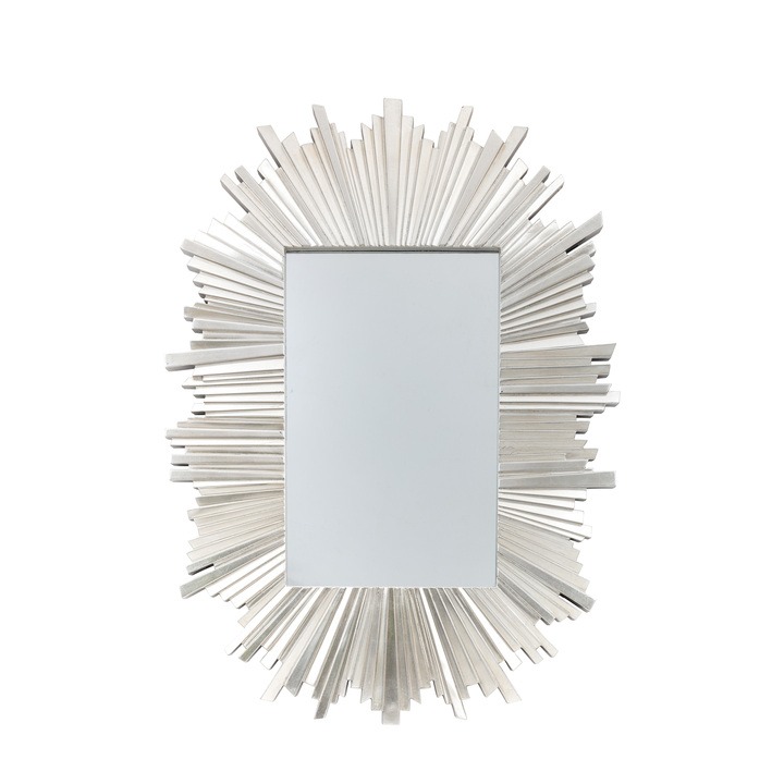 Striking rectangular starburst with a distressed finish mirror guaranteed to add drama t o any interior. Material: Glass / PU / MDF Type - Mirror: Wall Style - Mirror: Modern Shape - Mirror: Rectangle Hanging Orientation: Both - Portrait & Landscape Glass Type: Bevelled Frame Width: 288mm Fixing Type: D-Ring