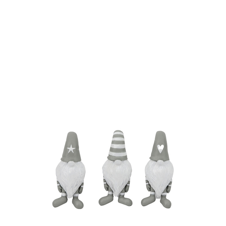 Add a lovely fun touch to your Festive season with this cute twist to the traditional Gonk collectables. These trio come as a set and in a classic white and grey colour to suit any interior. Pack Of: 3 Material: Polyresin Product Zone: Indoor