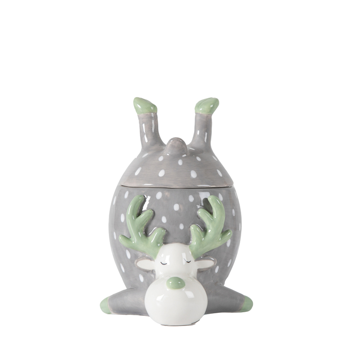This cute reindeer pot is the perfect storage solution, whilst adding fun and a touch of colour to your festive display. Material: Dolomite Product Zone: Indoor