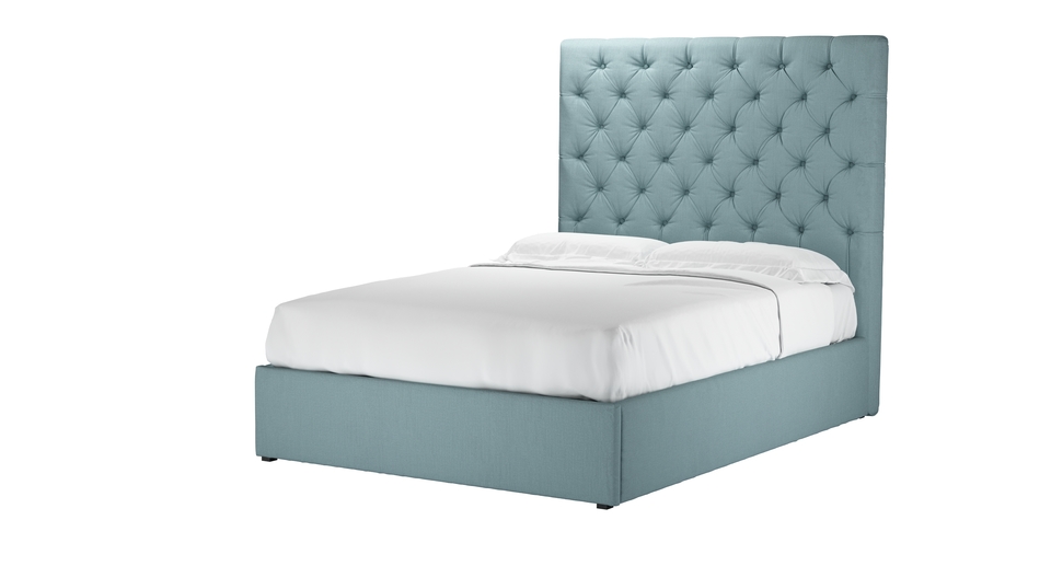 Rosalie 150cm Double Ottoman Bed in Lagoon Brushed Linen Cotton
