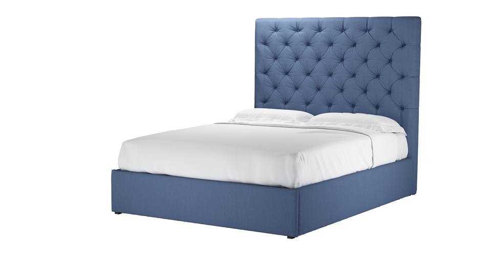 Rosalie 150cm King Ottoman Bed in Oxford Blue Brushed Linen Cotton