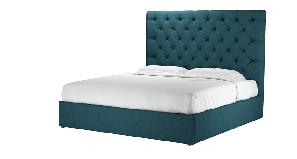 Rosalie 150cm Super King Ottoman Bed in Evergreen Brushed Linen Cotton