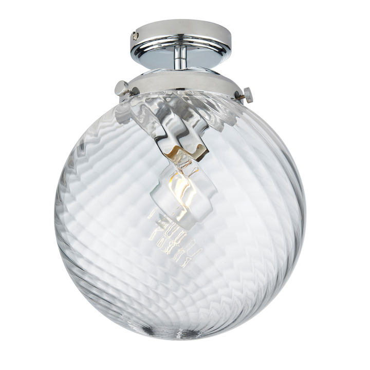 With chrome plated metalwork and beautiful, rounded clear rippled glass detail, this ceiling light brings an appealing modern style to the bathroom. IP44 rated for safe use in bathroom, with dimmable function and perfect for use with E27 LED lamps. Material: Steel / Glass Product Zone: Bathroom Bulb Type: 10W LED E27 Product Lumens: 86 Lumens Per Watt: 81 Dimmable: Dimmable Voltage: 220-240V Class: Class 1 IP Rating: 44