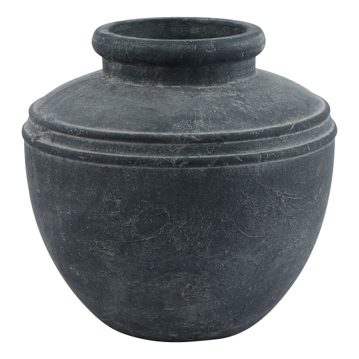 This striking Amalfi water pot brings timeless Mediterranean charm to any space. Crafted in a sophisticated weathered grey finish, its robust ceramic form features classic ribbed detailing and an elegant wide neck design that adds architectural interest. The substantial proportions and artisanal quality make it an ideal statement piece for both indoor and outdoor styling. Perfect as a standalone decorative element or grouped with varying heights of urns and vessels, this versatile pot complements both contemporary and rustic interior schemes. Its neutral colorway pairs beautifully with natural materials like wood and stone, while the textural surface creates engaging visual contrast against sleek modern furnishings. Suited to retail displays featuring dried botanicals, oversized branches or as part of curated vignettes, this piece appeals to customers seeking authentic Mediterranean style. The durable construction and weather-resistant finish ensure it maintains its character whether placed in a conservatory, on a covered porch, or as part of a sophisticated indoor arrangement. Consider merchandising alongside textured throws, earthenware, and artisanal accessories to create an inviting European-inspired collection that will resonate with design-conscious consumers.