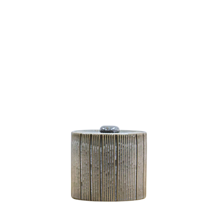 This beautiful handmade ceramic jar offers an organic textured design with a reactive grey glaze. Material: Clay