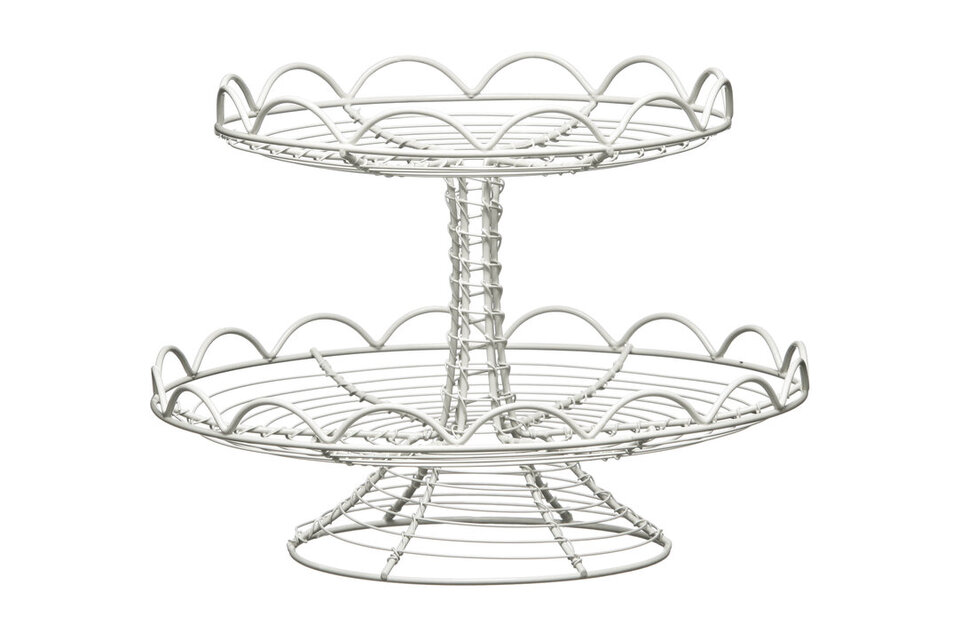 "If you're wanting to have family or friends round for a special occasion and are serving delicious treats then this cream wire two tier cake stand is ideal for displaying and serving your delicious homemade cakes. A great space saver on the table with the edges slightly raised to keep your treats from falling off, the attractive stand will make a great centrepiece on you table or countertop. Easy to clean, the elegant cake stand is the ideal accessory for parties of all occasions." materials: Metal/Synthetic composition:Coated Wire 0%,Plastic 0% colour: Cream Bulb Included: N Care & Use Instr: Clean With Soft Damp Cloth . Do Not Use Abrasive Cleaners Dishwasher Safe: N Electric Hob Safe: N Freezer Safe: N Gas Hob Safe: N Halogen Hob Safe: N Induction Hob Safe: N Materials: Metal/Synthetic Microwave Safe: N Oven Safe: N Product Depth: 29 Product Height: 21 Product Weight (kg): 0.55 Product Width: 29 Item Assembled: Y Courier Service: Evri Packet