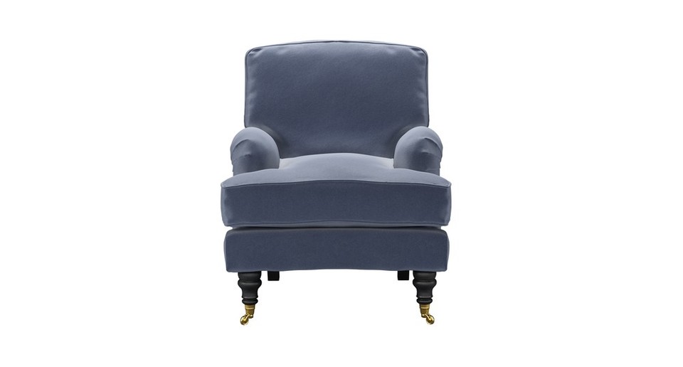 A classic design and one of our most popular sofas. back cushions: feather and fibre color: blue covers: fixed seat cushions: feather wrapped foam size: Small Armchair