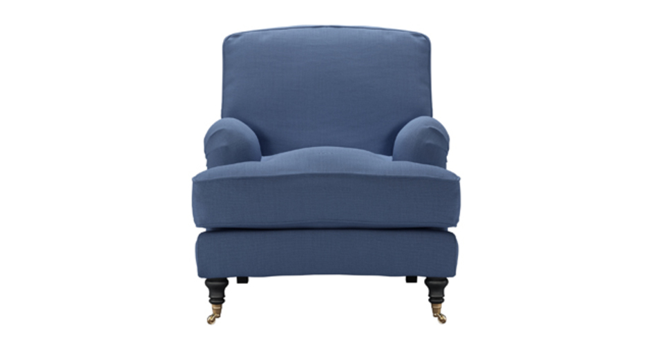 A classic design and one of our most popular sofas. back cushions: feather and fibre color: blue covers: fixed seat cushions: feather wrapped foam size: Armchair
