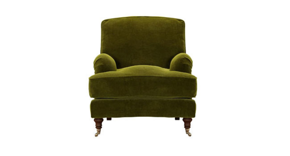 A classic design and one of our most popular sofas. back cushions: feather and fibre color: green covers: fixed seat cushions: feather wrapped foam size: Armchair
