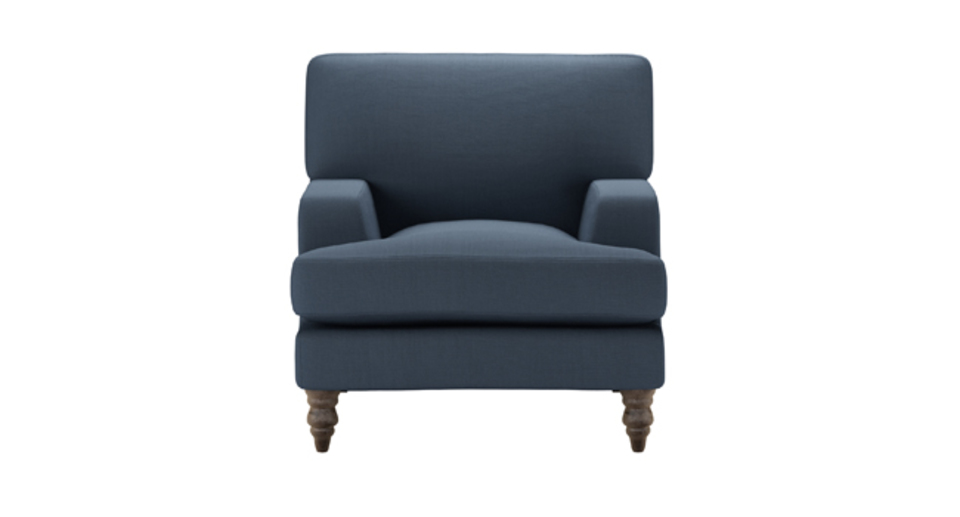 Our Isla mixes drawing room elegance with luxurious lounging. It sits on insanely smart turned wooden legs, and would grace any environment with refined style. Please note that when ordered in our leather fabrics, the covers are fixed and therefore cannot be removed like other textile upholstery options. However, the cushion covers are fully removable on all Isla sofas. back cushions: feather and quallofil fibre color: blue covers: loose seat cushions: fibre wrapped foam size: Small Armchair