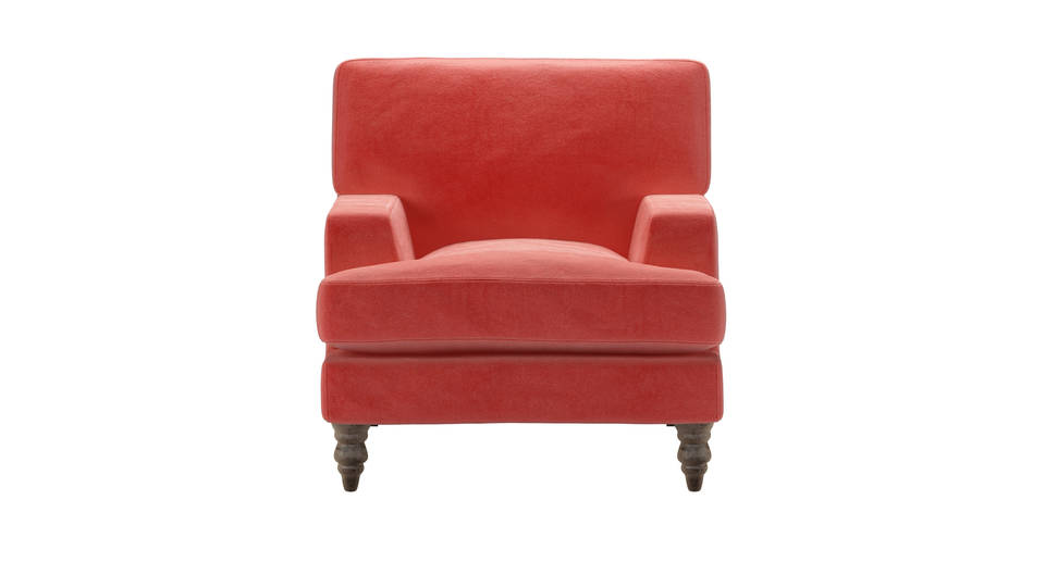 Our Isla mixes drawing room elegance with luxurious lounging. It sits on insanely smart turned wooden legs, and would grace any environment with refined style. Please note that when ordered in our leather fabrics, the covers are fixed and therefore cannot be removed like other textile upholstery options. However, the cushion covers are fully removable on all Isla sofas. back cushions: feather and quallofil fibre color: pink covers: loose seat cushions: fibre wrapped foam size: Small Armchair