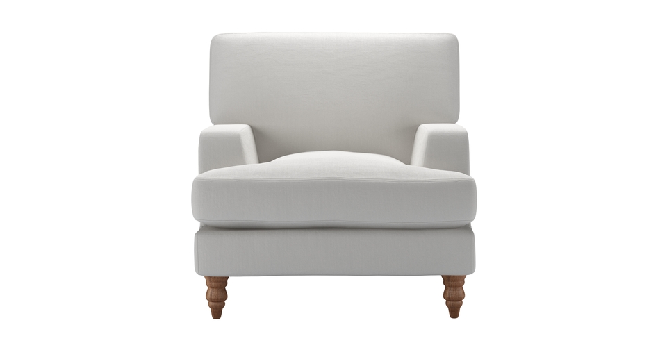 Our Isla mixes drawing room elegance with luxurious lounging. It sits on insanely smart turned wooden legs, and would grace any environment with refined style. Please note that when ordered in our leather fabrics, the covers are fixed and therefore cannot be removed like other textile upholstery options. However, the cushion covers are fully removable on all Isla sofas. back cushions: feather and quallofil fibre color: natural,white covers: removable covers seat cushions: fibre wrapped foam size: Armchair