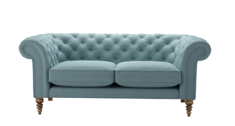 The Chesterfield gets a leggy new look. back cushions: see website color: blue covers: see website seat cushions: see website size: 2.5 Seat Sofa